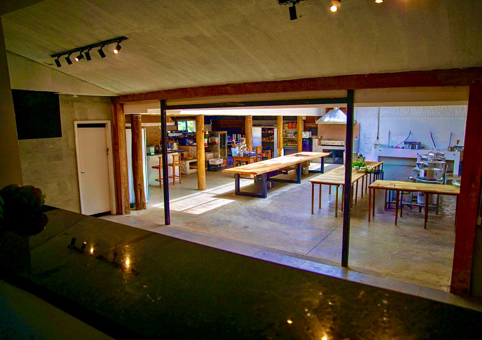 Construído em madeira nobre, o salão combina rusticidade e sofisticação em medida perfeita. Amplo, ventilado, com acústica cuidada — pronto para receber desde jantares íntimos até grandes celebrações com mais de 400 convidados.